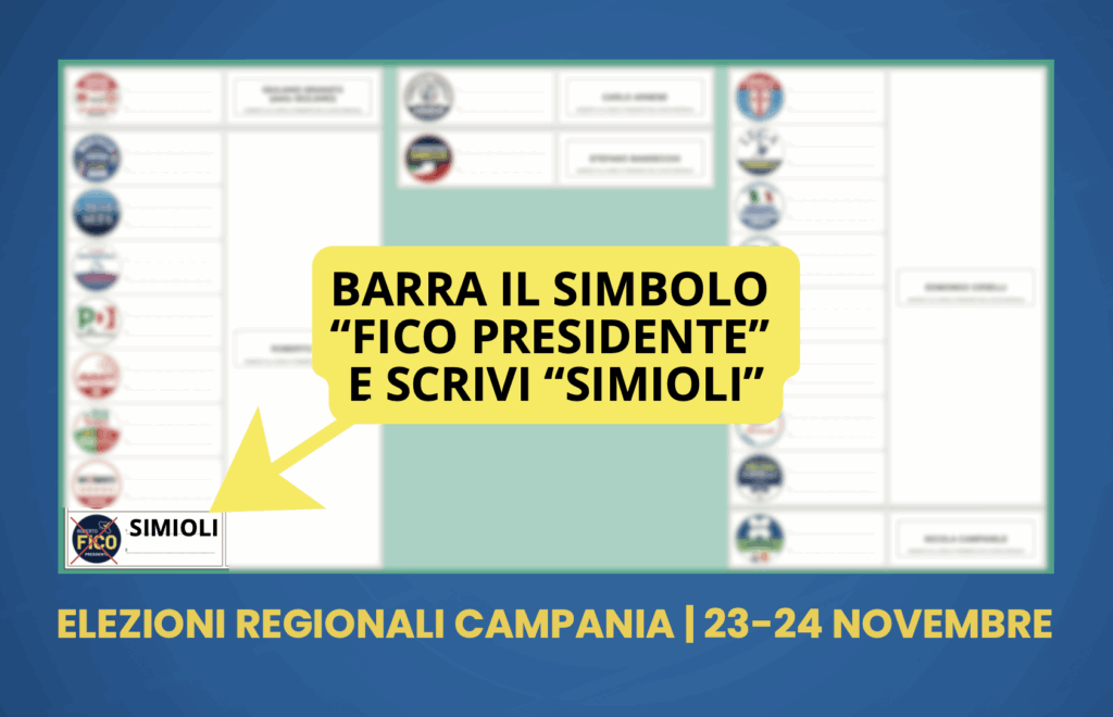 ✏️ Barra il simbolo “Roberto Fico Presidente” e scrivi “SIMIOLI”